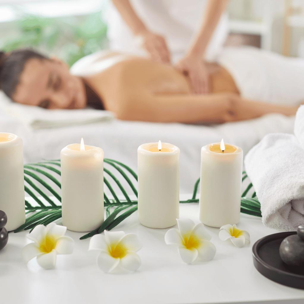 A luxurious, exotic treatment where warm candle wax melts into a rich massage oil.